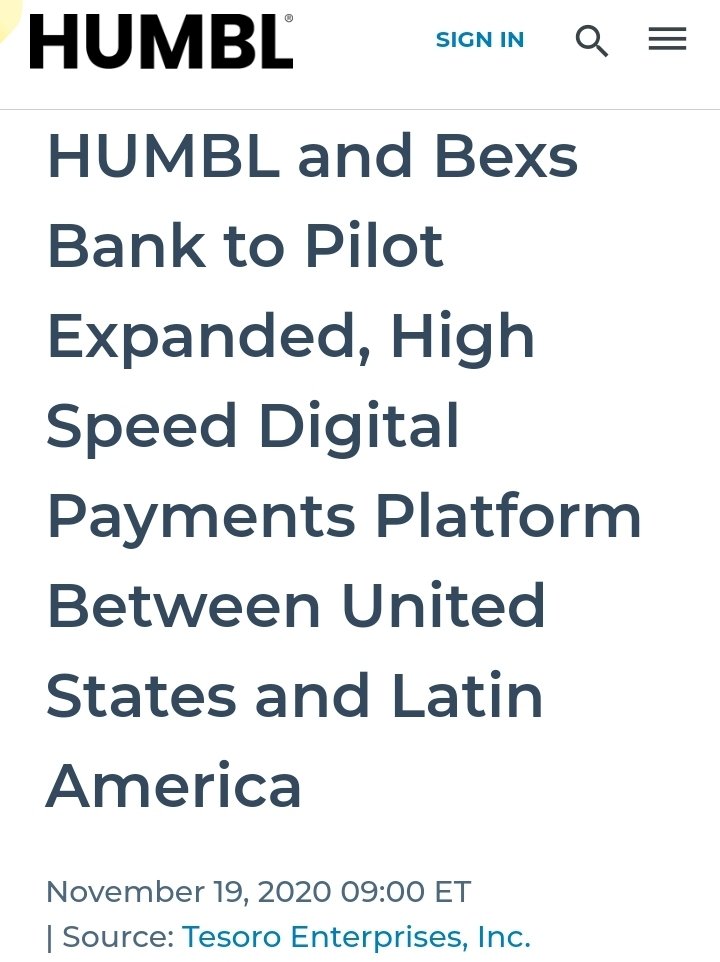 The blockchain penny stock looks set for an investment bonanza even if just temporarily. 17 2020 GLOBE NEWSWIRE -- Tesoro Enterprises Inc. In an all-stock transaction the members of HUMBL will receive preferred shares of Tesoro in exchange for their HUMBL holdings.