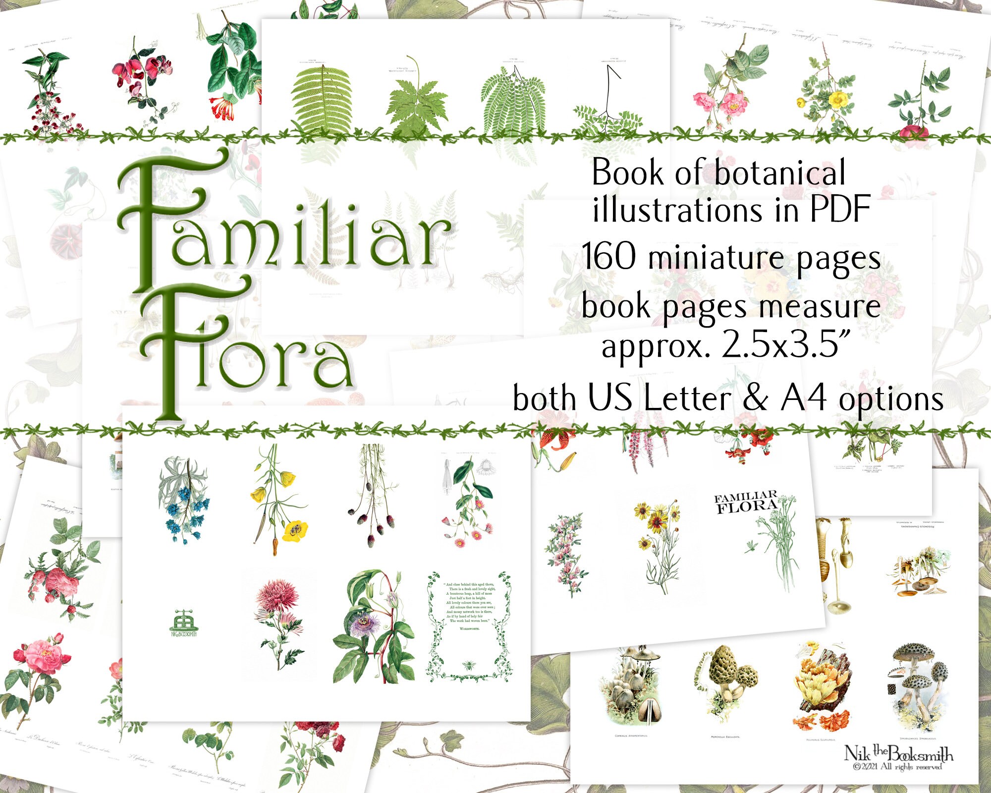 Familiar Flora Miniature Botanical Illustrations Book Pages Etsy Hong Kong